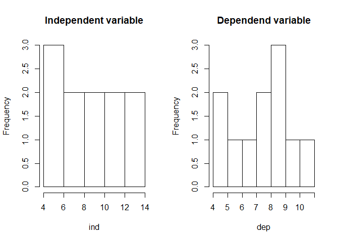 lmod <- lm(dep ~ ind) # Compute linear regression model