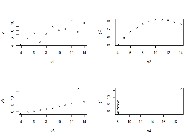 xlab = names(anscombe[i]), ylab = names(anscombe[i+4]))