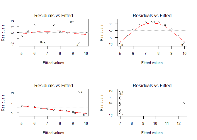 ## lm(formula = anscombe[, i + 4] ~ anscombe[, i])