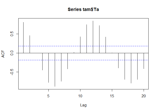 Box.test(tam$Ta, lag = 10, type = "Box-Pierce")