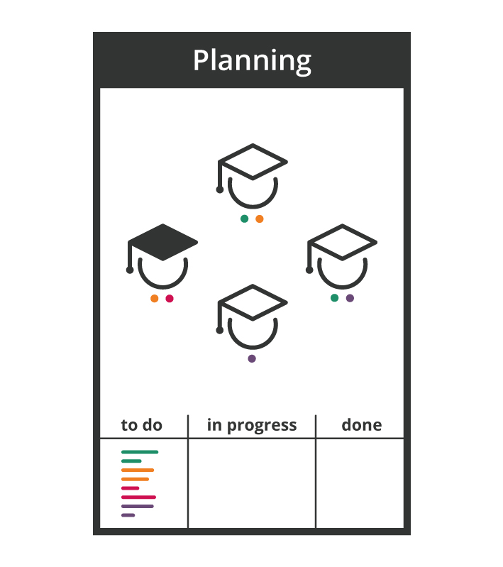![]() Die Lehrperson (Product Owner) | ![]() Team Captain (eduScrum Master) | ![]() Das eduScrum Team |