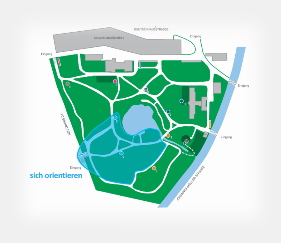Im Bereich „sich orientieren“ finden Sie zwei feste Stationen.