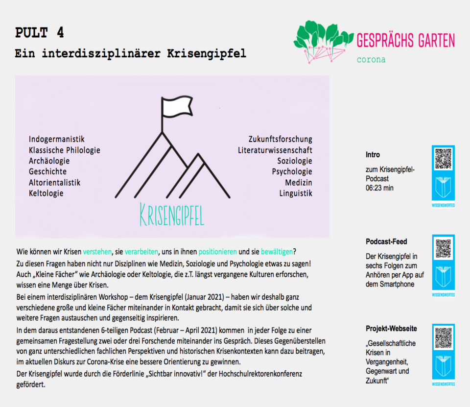 Zu Gast ist hier ein weiteres durch die HRK gefördertes Projekt des Wettbewerbs „Kleine Fächer: sichtbar innovativ!“, der „Interdisziplinäre Krisengipfel“ – aus dem Fachbereich 10 (Theresa Roth).
