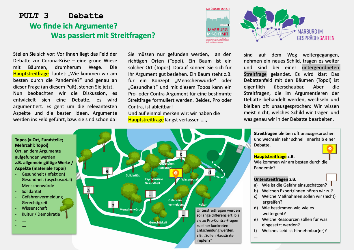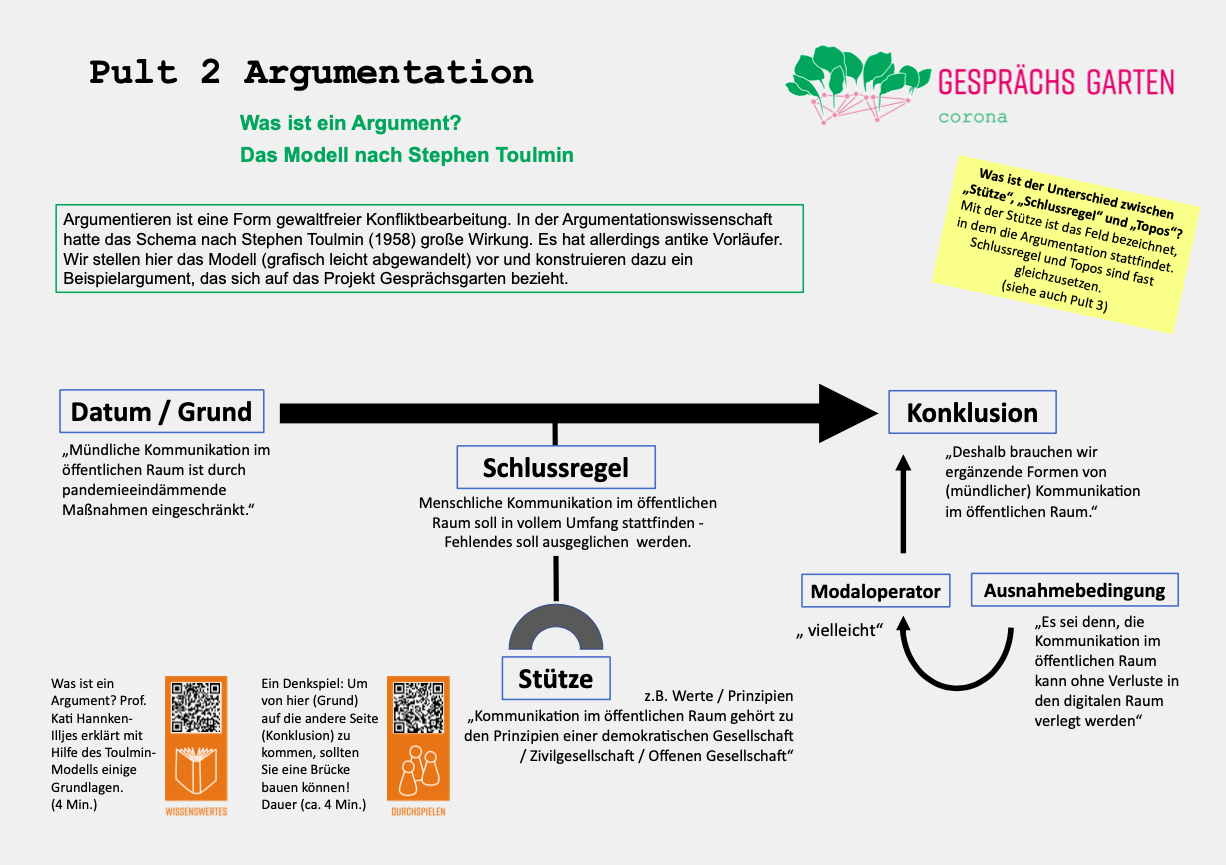 In diesem Bereich finden Sie ab Mai Pult 2 zu Aspekten des Argumentierens sowie Pult 3 zu Debatten und ihren Visualisierungen.