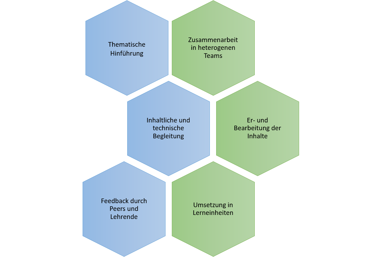 Die Studierenden hatten die Aufgabe in diesem Lehrprojekt zu reflektieren, welche Lehr-/Lerninhalte ihnen helfen würden, die Inhalte besser und nachhaltiger zu verstehen. Ausgehend von diesen Überlegungen haben diese sich inhaltlich vertieft eingearbeitet und die Lerneinheiten erstellt. Sie haben sich dabei sowohl mit den Themen und deren Ausgestaltung als auch mit der Gestaltung und Erstellung von digitalen Inhalten beschäftigen müssen.
