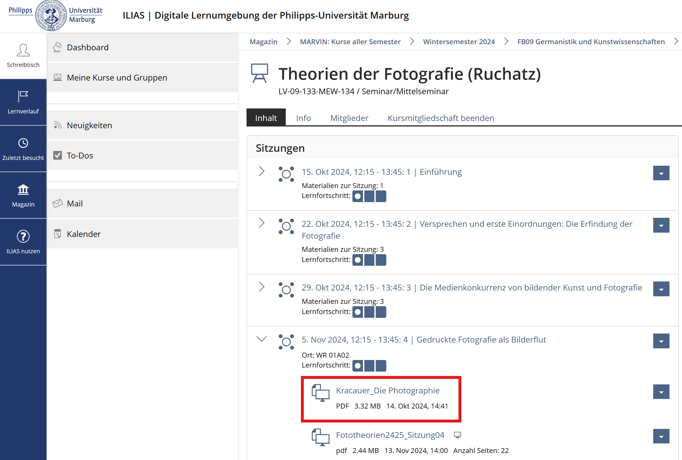 - Navigieren Sie zu dem Kurs, aus dem Sie Material herunterladen möchten.